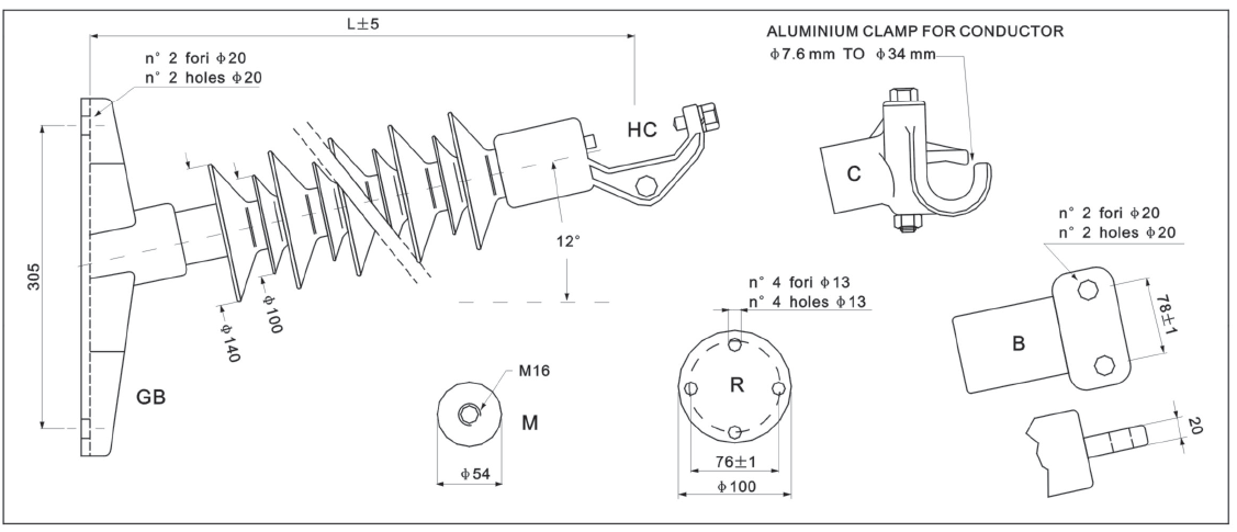 RL-SOR класса 300KN Композитный изолятор напряжения для трансмиссии