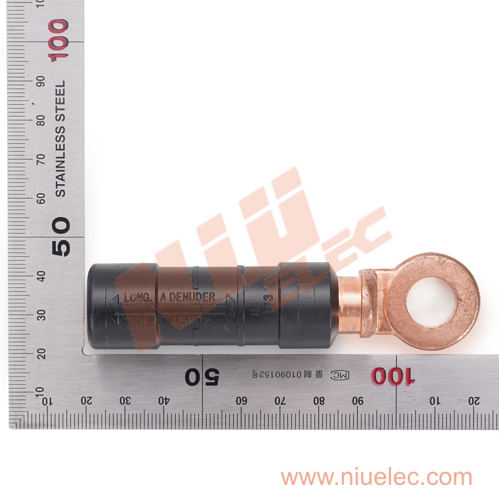 Предварительно изолированный биметаллический наконечник DTL-4 используется для соединения кабеля LV-ABC с электрооборудованием.