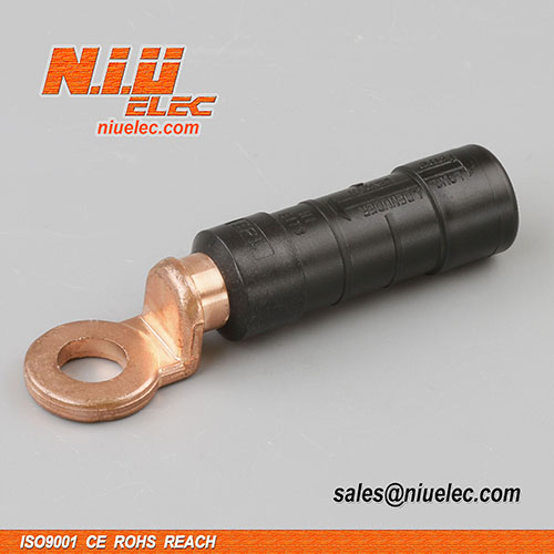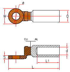 Биметаллический наконечник DTL-3 подходит для привинчивания ненатяжных алюминиевых соединений с использованием медных шайб во влажных помещениях, а также для предварительно закругленных секторных проводов.
