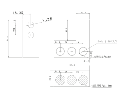 Два отверстия, передний вход. Для медных или алюминиевых проводников. Корпус изготовлен из высокопрочного алюминиевого сплава.