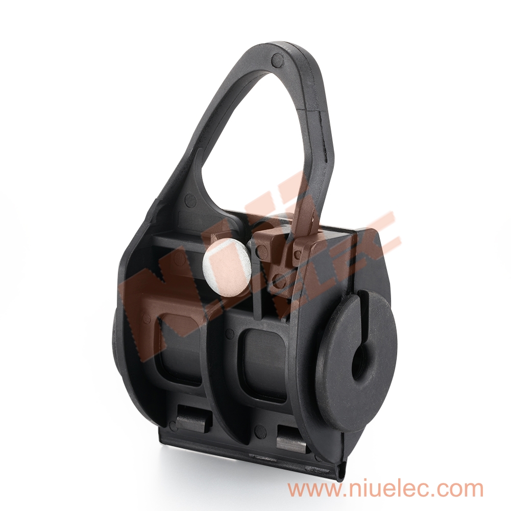 Диэлектрический подвесной зажим DS8 для оптоволоконного кабеля используется для подвешивания кабелей ADSS на промежуточных опорах на кабельных трассах с углом < 20° в сетях доступа (пролетами до 100 м).